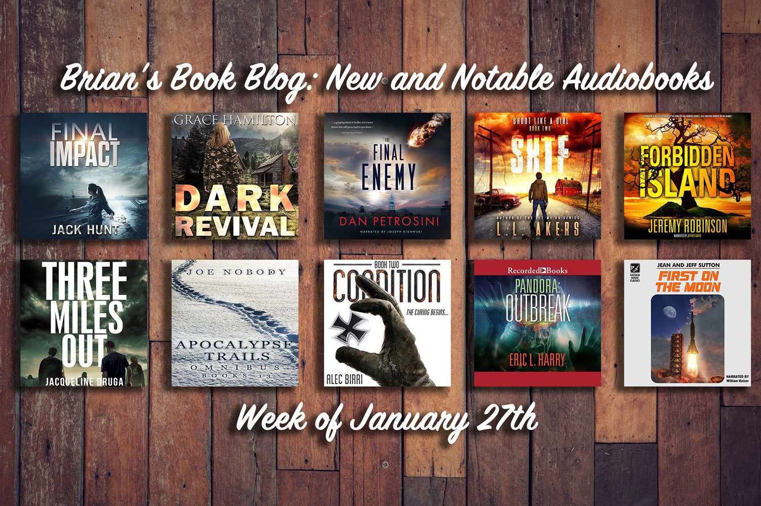 Here are this week’s (Week of January 27th) new and notable audiobooks featuring Post-Apocalyptic, Sci-Fi, Thrillers, and more from Steve’s Book Blog.
